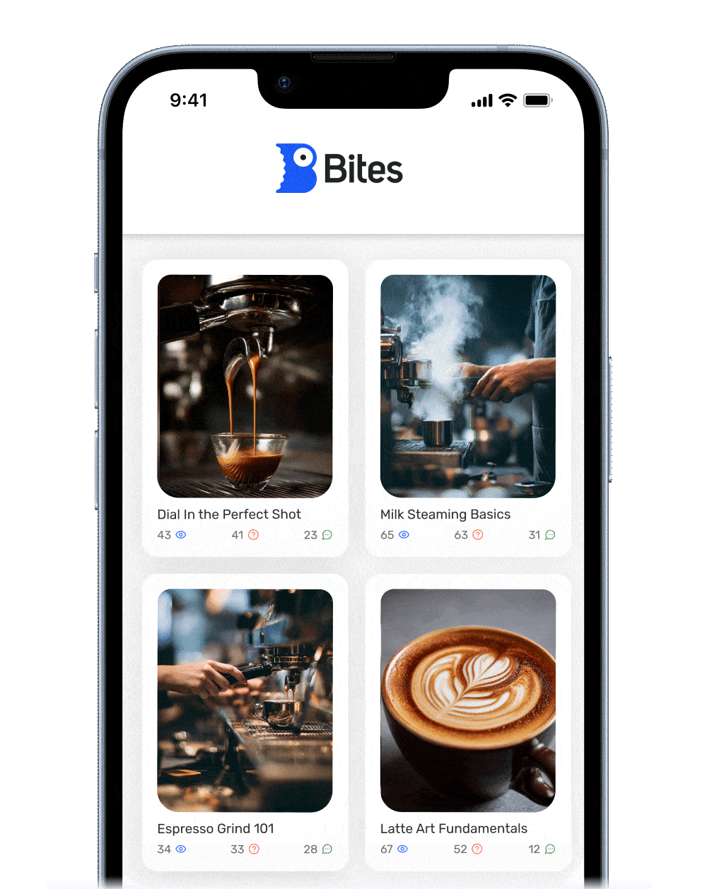 Bites is built for short, high-impact learning - not long courses that employees forget to return to.